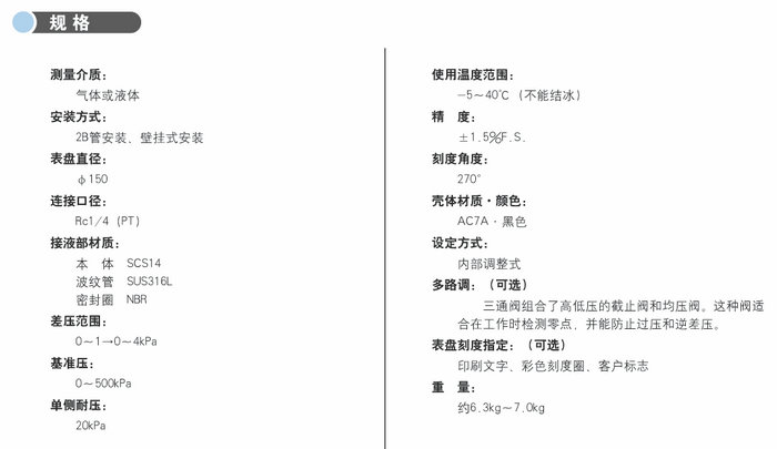 這種差壓表主要用于測量4KPa以下的微差壓。可以把測量值轉(zhuǎn)換為各種單位,能用于液位和流量的測量。